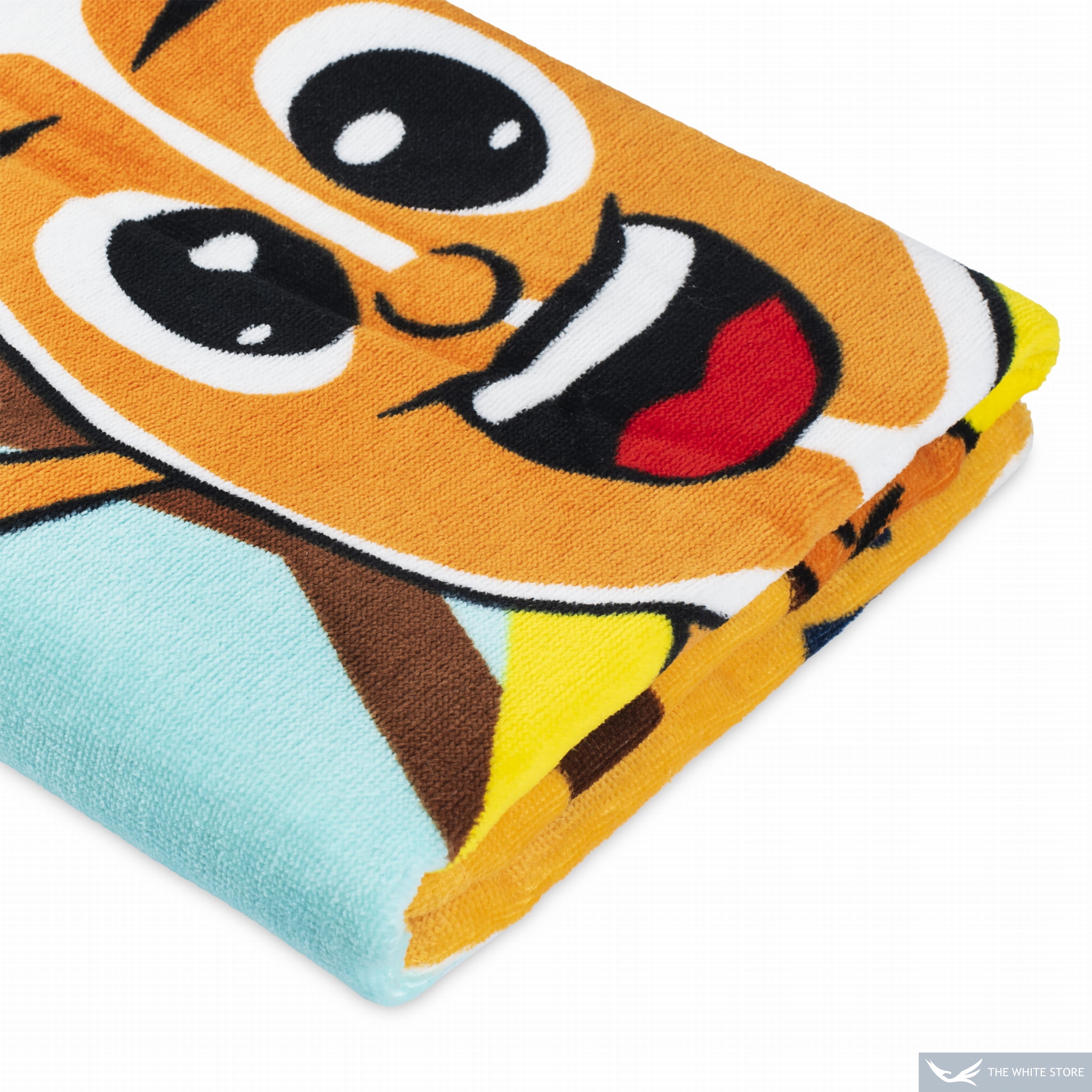 Prawa, nadrukowana strona ręcznika jest welurowa, natomiast lewa strona jest biała.